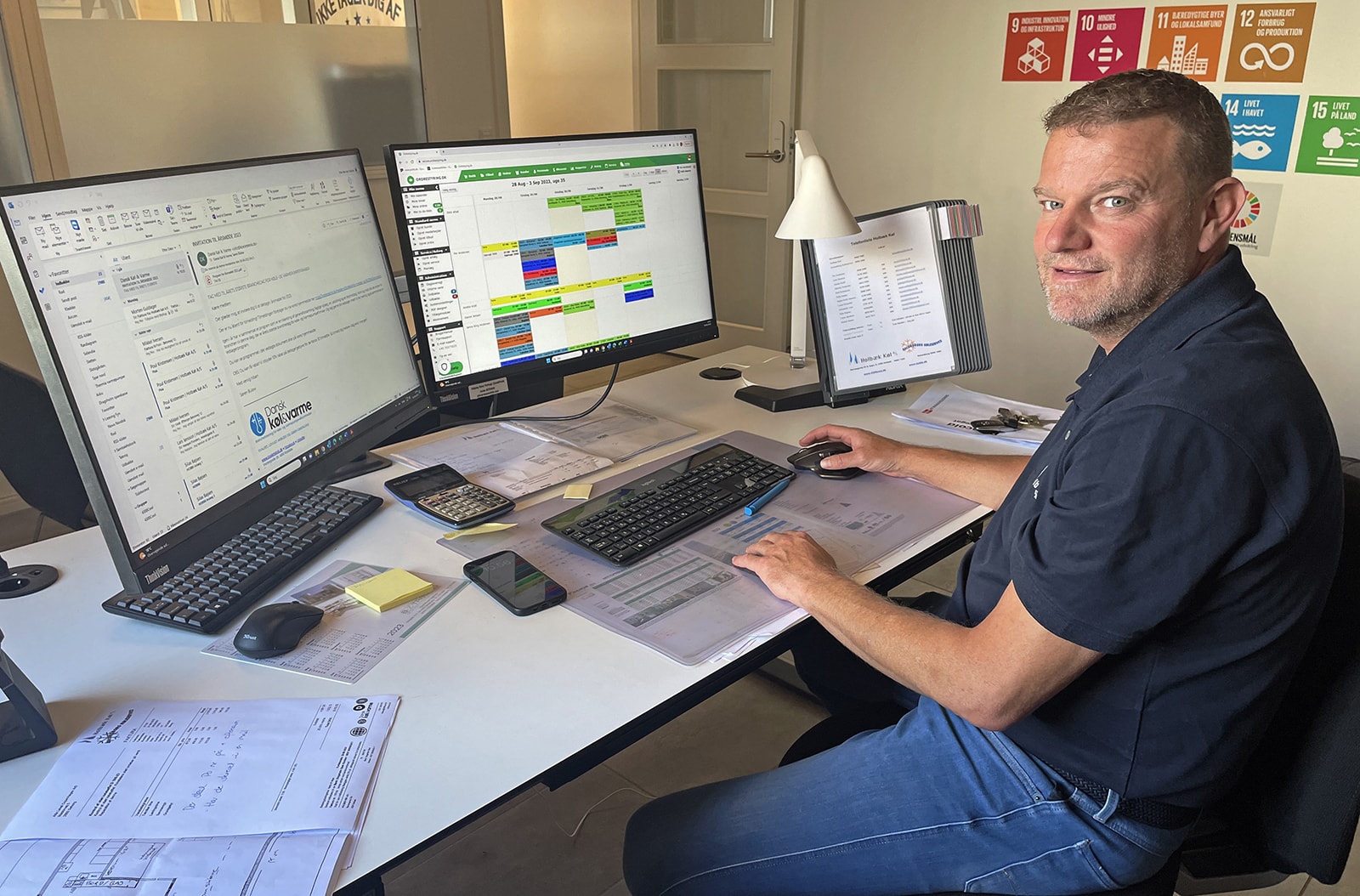 Styringen af virksomhed og opgaver er digitaliseret til at være en velsmurt maskine. Alle montører har en app på telefonen, hvor de kan se opgaver, få rutevejledning, registrere tidsforbrug, lægge fotos ind osv. Og hjemme på kontoret kan Per og hans overmontør følge, hvor i landet hver bil befinder sig, så nærmeste montør kan dirigeres videre, hvis der opstår en akut opgave.