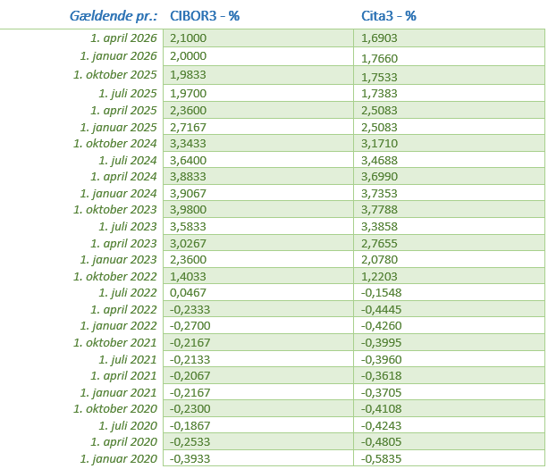 Rentesatser for indlån