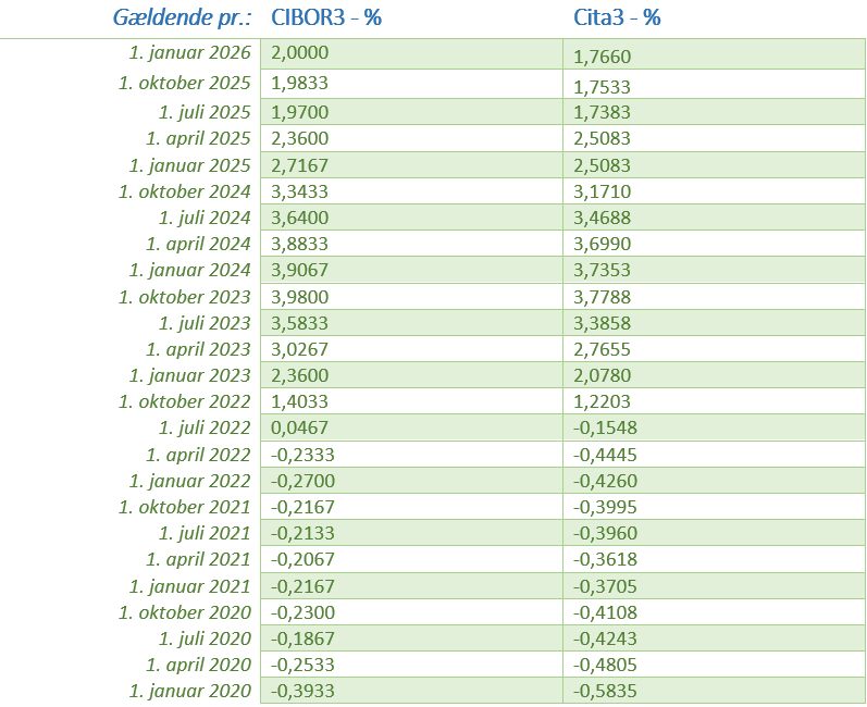 Rentesatser for udlån - Gældende fra 01.01.2026